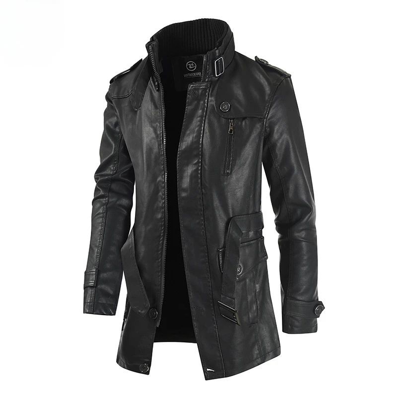 Blouson Hiver Long effet cuir noir Homme : Élégance et confort combinés