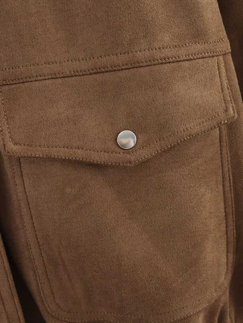 Disponible en une teinte marron riche et intense, ce blouson ajoute une touche de sophistication naturelle à n’importe quel ensemble. Sa texture polie et son esthétique vous assurent de faire forte impression à chaque occasion.