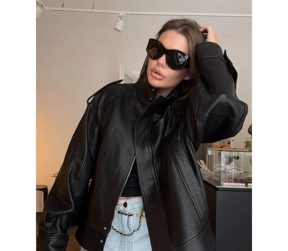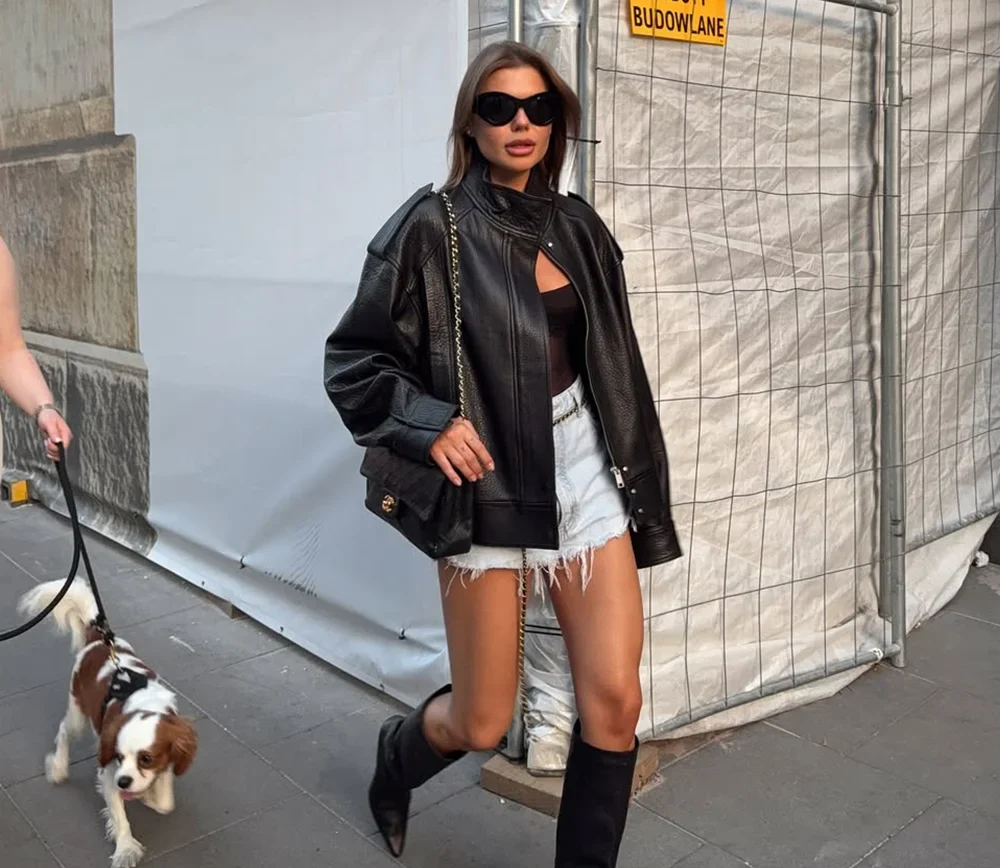Le Blouson Skaï Noir fermeture centrale pour un style moderne