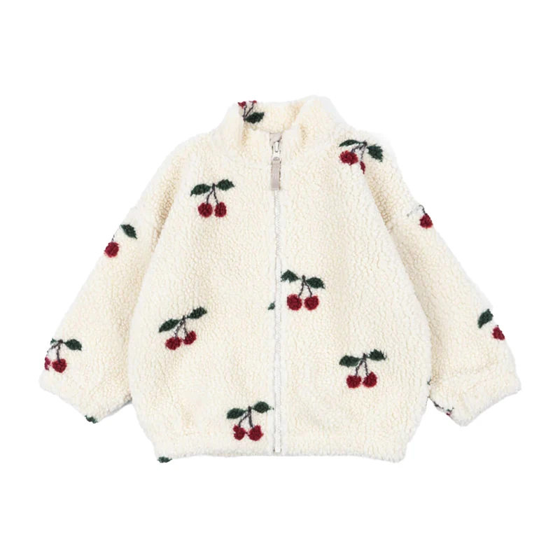 Une finition impeccable pour le blouson veste d’automne cerises et blanc 2 – 9 ans